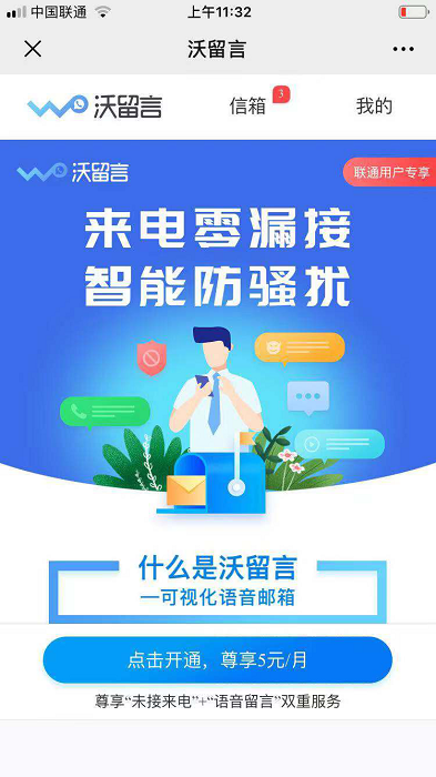 目前,iPhone手机用户可通过“沃留言”服务号或H5页面进行该项产品的业务订购。