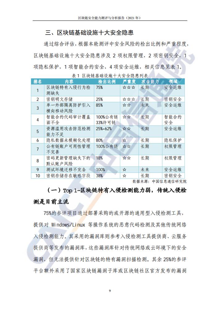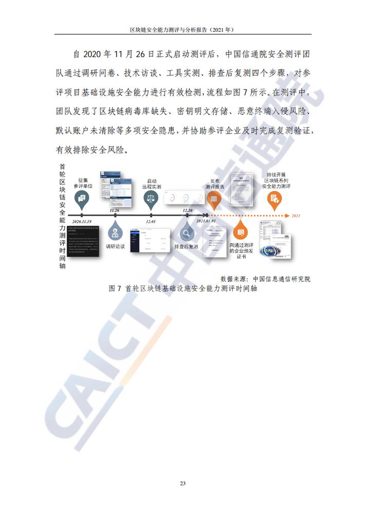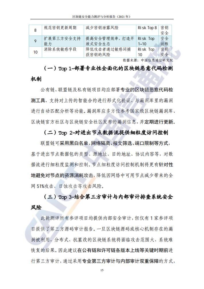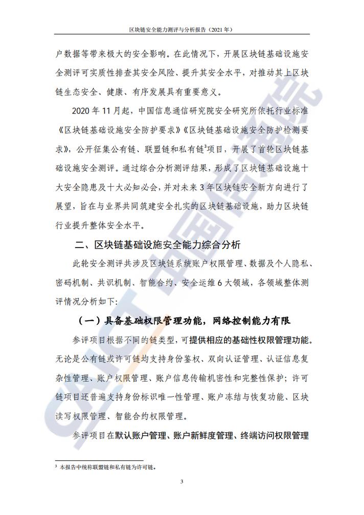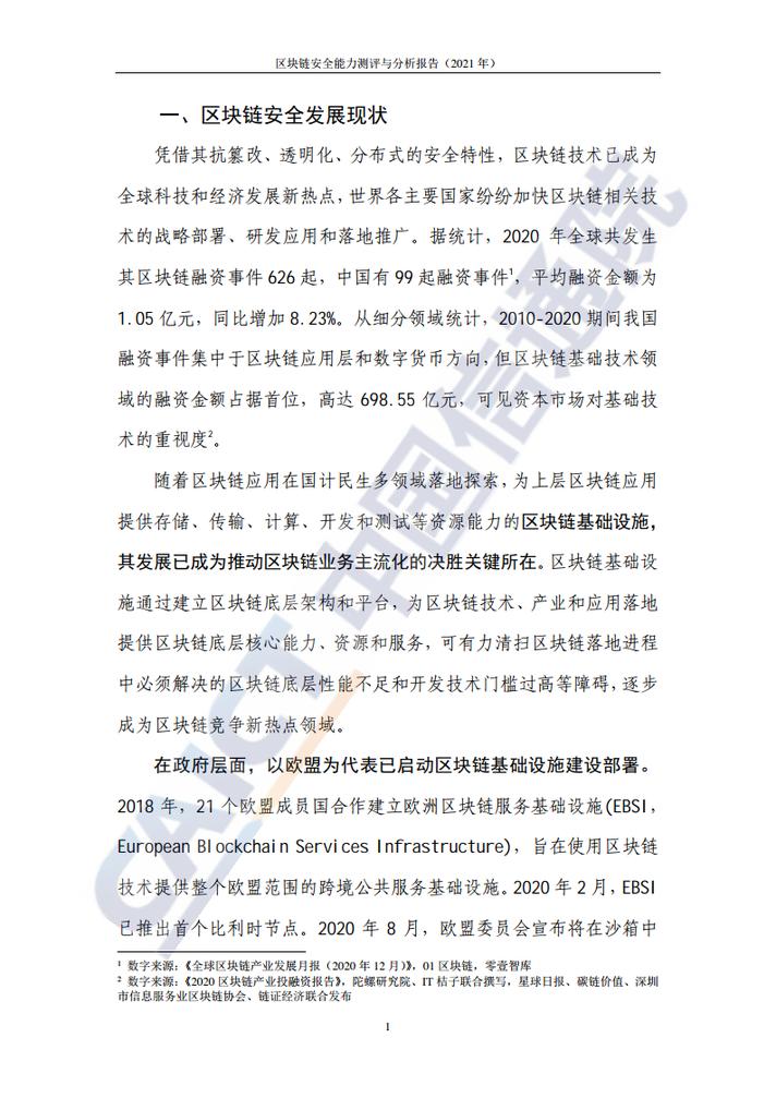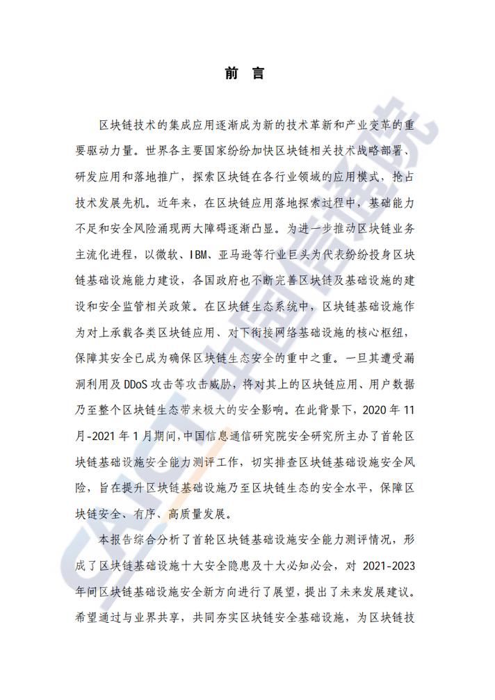 为了提升区块链基础设施乃至区块链生态整体安全水平,中国信息通信研究院(以下简称“中国信通院”)安全研究所基于2020年11月-2021年1月间举办的首轮区块链安全能力测评中发现的安全问题,发布了《区块链安全能力测评与分析报告(2021年)》。