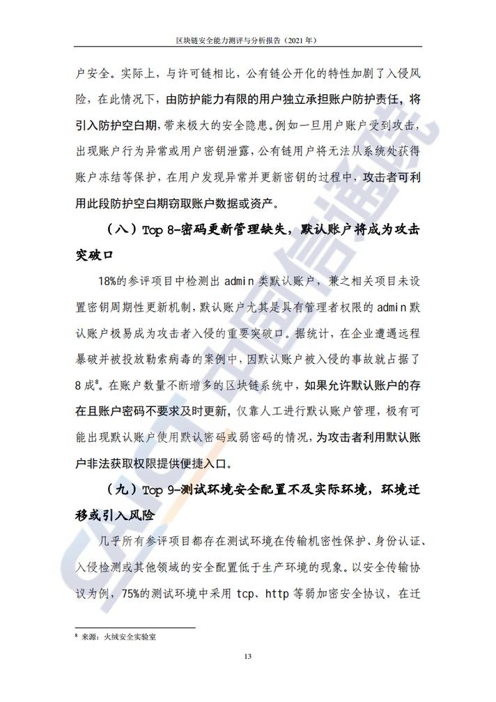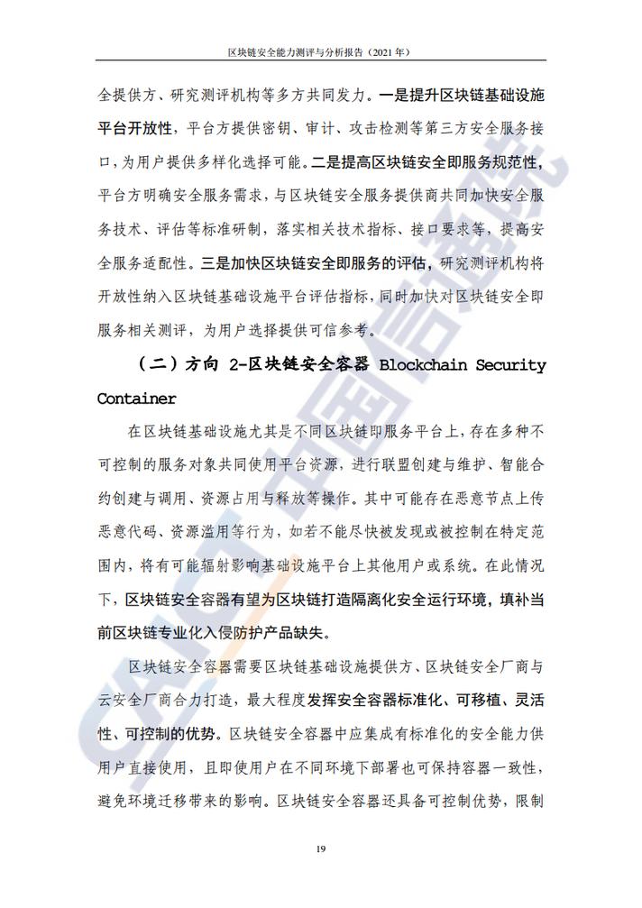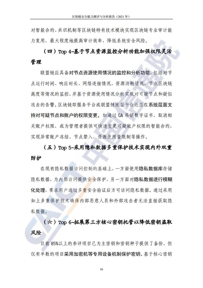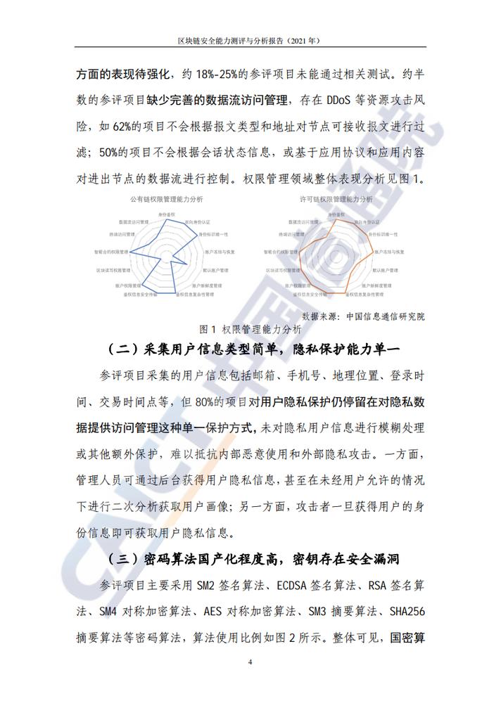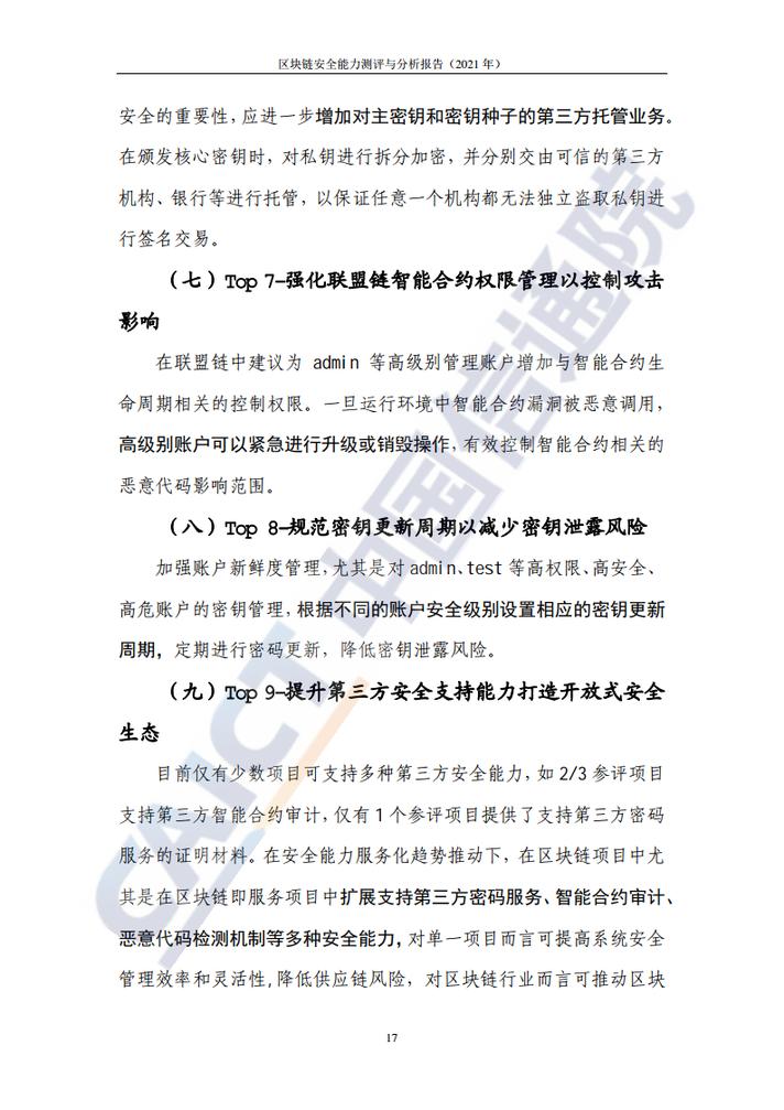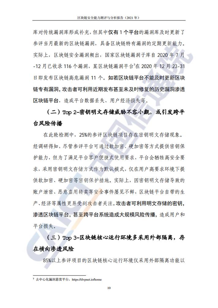 为了提升区块链基础设施乃至区块链生态整体安全水平,中国信息通信研究院(以下简称“中国信通院”)安全研究所基于2020年11月-2021年1月间举办的首轮区块链安全能力测评中发现的安全问题,发布了《区块链安全能力测评与分析报告(2021年)》。