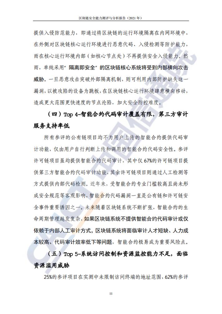 为了提升区块链基础设施乃至区块链生态整体安全水平,中国信息通信研究院(以下简称“中国信通院”)安全研究所基于2020年11月-2021年1月间举办的首轮区块链安全能力测评中发现的安全问题,发布了《区块链安全能力测评与分析报告(2021年)》。